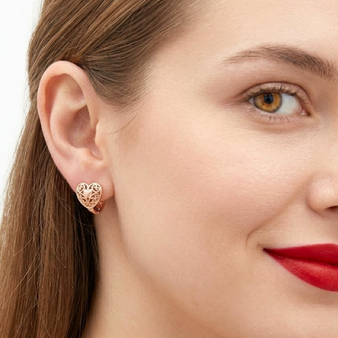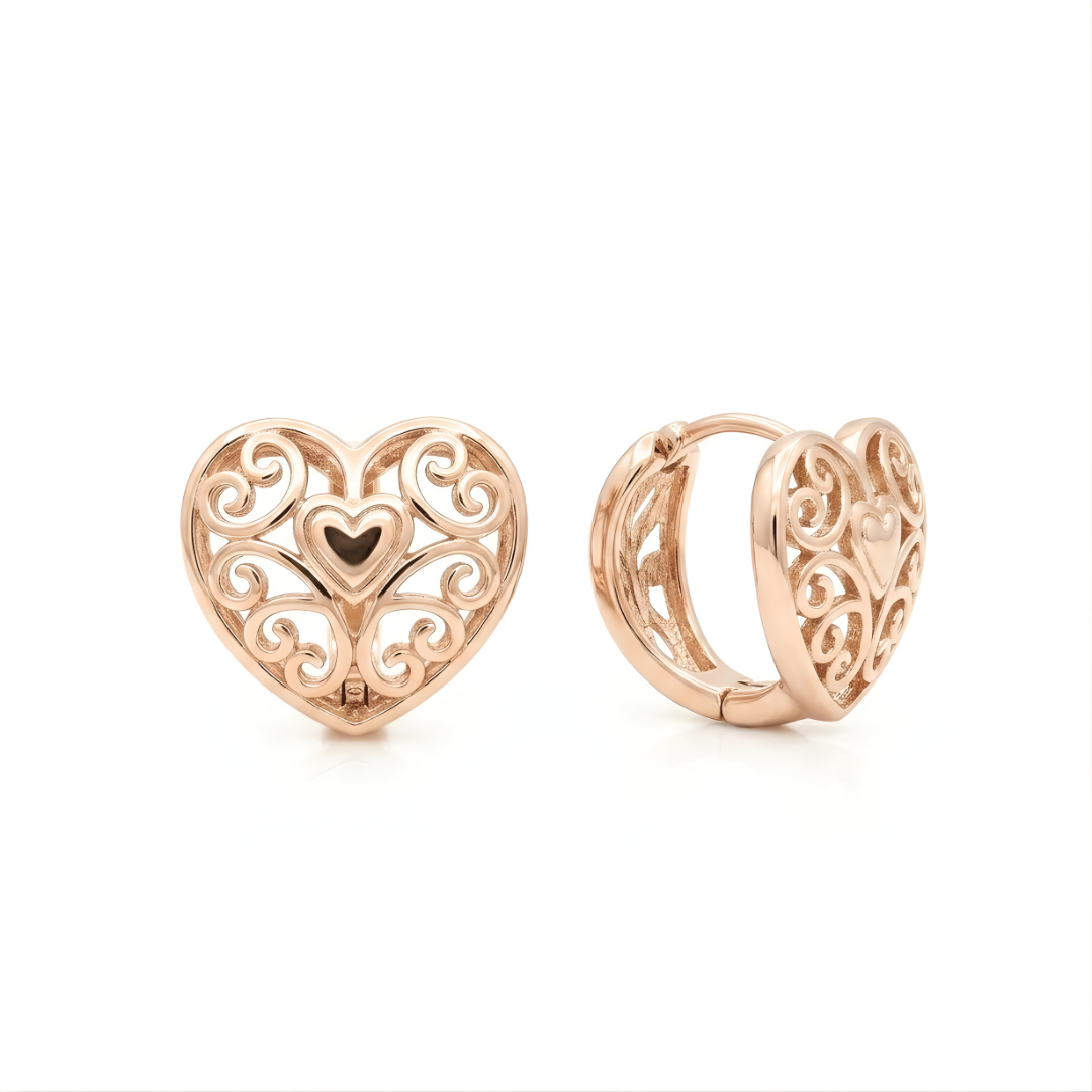 18K Gold Filled Rose Gold Heart Huggie Earrings